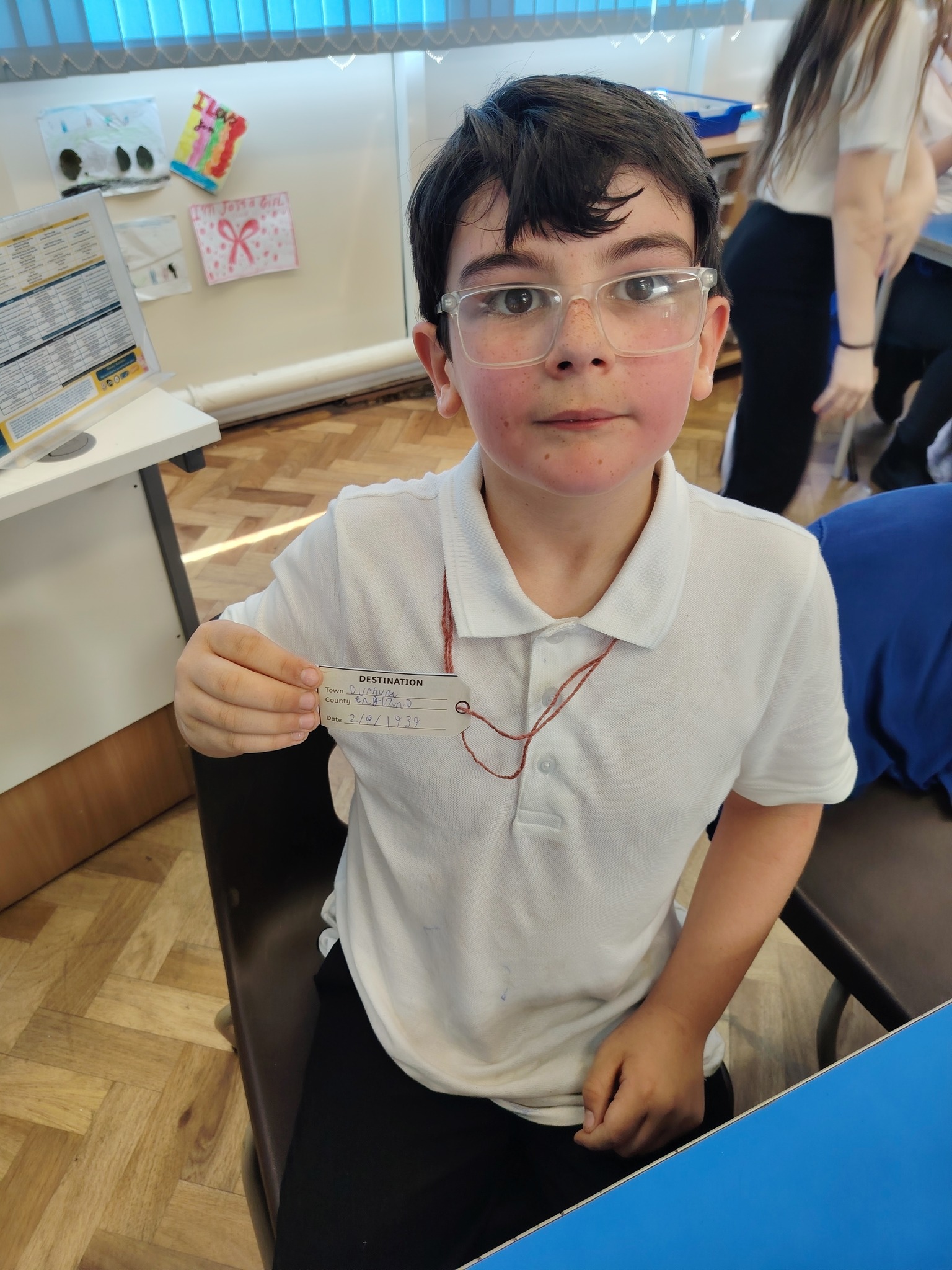 In the afternoon, we journeyed back to 1939, imagining the very first evacuation at the brink of war. The children created their own evacuation labels and prepared to board the train. After a lively and noisy journey, they were introduced to the families they would be staying with. Reactions were mixed — some children were dismayed to discover they would be working long hours cleaning and washing, while others were delighted at the prospect of living with wealthy families! The children also had strong opinions about the very bossy train conductor!